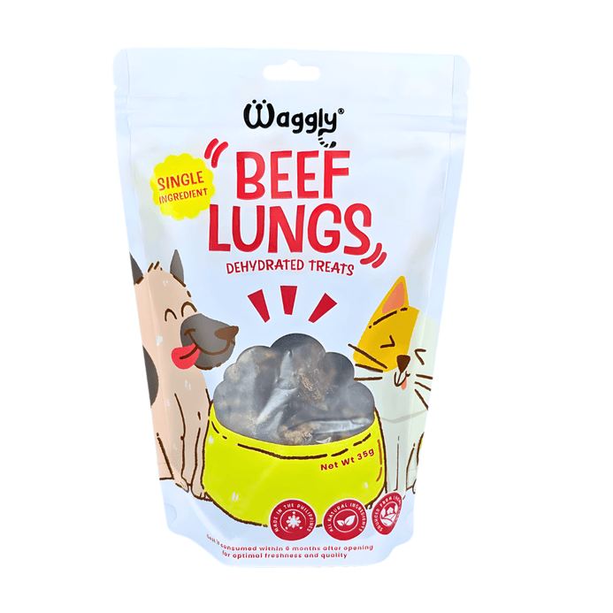 Give your dog a light, crunchy, and protein-packed treat with Waggly Dehydrated Beef Lungs — made from 100% locally sourced beef, gently dehydrated to lock in nutrients and flavor.