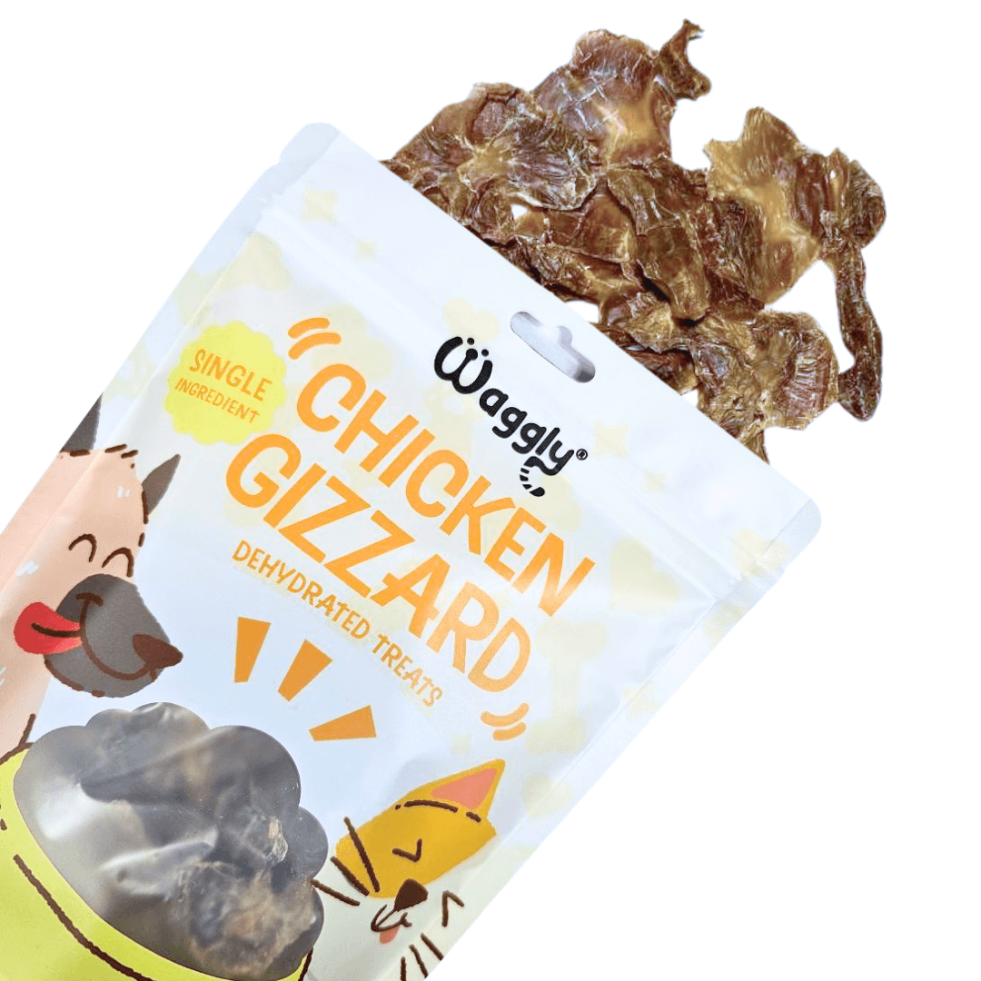 Give your dog a wholesome, protein-rich snack with Waggly Dehydrated Chicken Gizzards — made from 100% locally sourced chicken, gently dehydrated to preserve nutrients, flavor, and natural texture.