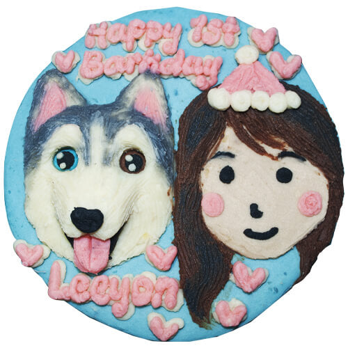 Special moments are best spent together! Celebrate any occasion with our hooman and me portrait cake. Available in different flavors and sizes. All our cakes are made of human grade ingredients that are safe for pets. We don't use sugar, salt, fondant, and gum paste. Let your furbabies enjoy this all edible custom cake.
