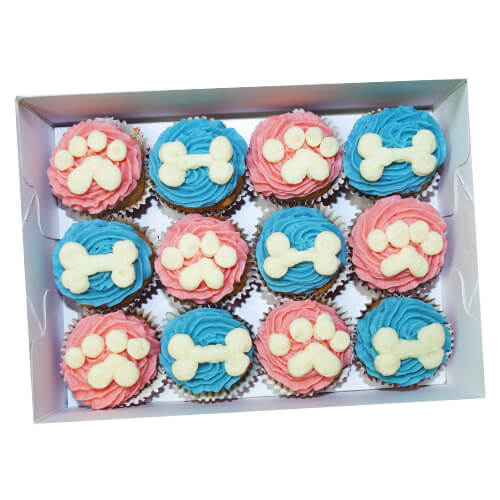 Want something unique to celebrate a milestone in your pet's life? Customize it by adding a dedication (1 letter per pupcake), or simply add paw and bone drawings to make it special. These mini cupcakes for pets come in box of 12s.
