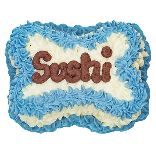 Tiny cake for tiny doggos. This bone cake is perfect for 1 small to medium pets. You can customize it by choosing the frosting colors and adding your pet's name.