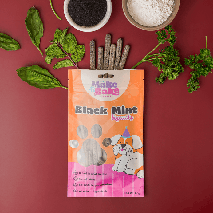 Our black mint biscuits for pets feature activated charcoal as a key ingredient, renowned for its detoxifying properties. Activated charcoal aids in promoting optimal digestive health, making these biscuits more than just a tasty indulgence for your pet.